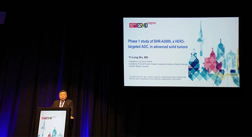 10月23日,九州酷游医药创新药、HER3靶向ADC药物SHR-A2009治疗晚期实体瘤的I期研究亮相2023 ESMO大会简短口头报告现场5。该研究由广东省人民医院的吴一龙教授牵头开展,吴一龙教授在现场公布该研究的重要进展。研究结果显示,SHR-A2009在经治晚期实体瘤患者中显示出可控的安全性和令人鼓舞的抗肿瘤活性。目前评估更高剂量的SHR-A2009在选定癌症类型(NSCLC和其他实体肿瘤)中作用的试验正在进行中。